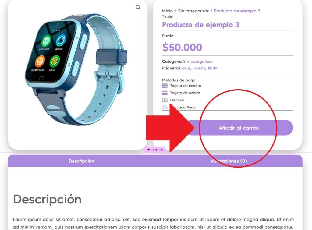 Elige el producto y haz click en “Añadir al carrito”