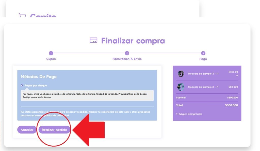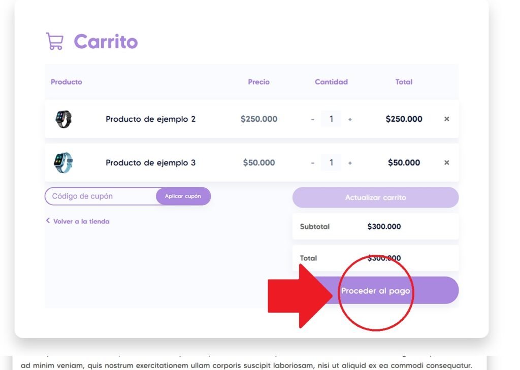 Ve al carrito y haz click en “Proceder al pago”